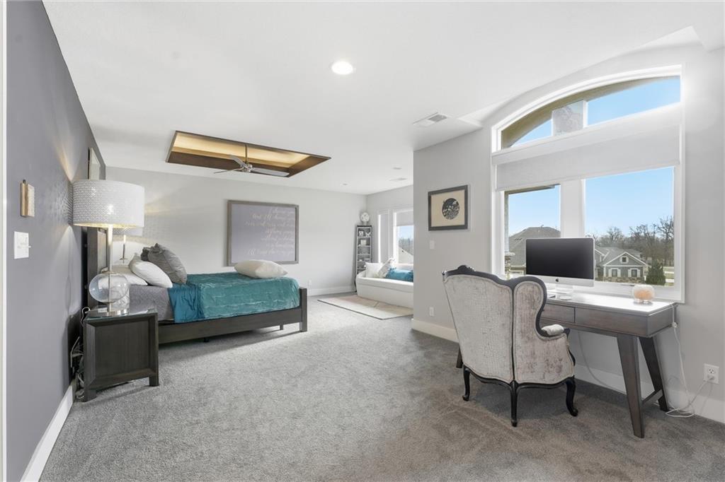 New home for the new year! Come tour this contemporary beauty in the sought after Overland Ridge community. Built by Suma Design & Construction, this property boasts 22-foot ceilings in the great room, along with a statement fireplace with designer tile and hearth. Floor to ceiling windows flood the home with natural light. The spacious kitchen offers a gas cooktop, walk-in pantry and Bosch appliances. The expansive primary suite features a spa-like bath, complete with a free standing soaker tub and make-up counter. The 4th bedroom on the main level could double as a home office. A finished lower level provides additional living space with an exercise room (could also serve as a playroom) and a generous non-conforming 5th bedroom with an egress, good-sized closet and a stunning en suite with double vanity, quartz tops, upgraded tile and shower. Extend your entertaining onto the covered composite deck. The owners also added a patio in the back and upgraded landscaping. The oversized 3-car side entry garage has a 240 outlet for an EV. Just a short walk to the community pool and the back deck offers a great view of fireworks on the 4th. This lightly-lived in home is a must-see.